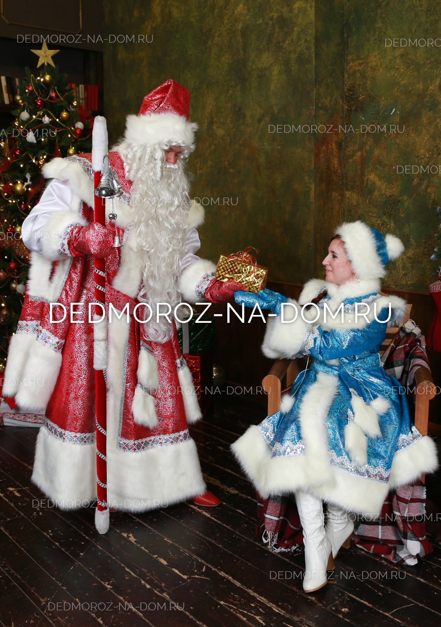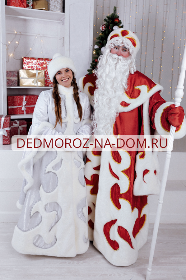 Снегурочка в этом костюме составляет пару Деду Морозу в костюме «Хохлома». Костюм Снегурочки также выполнен по индивидуальному заказу из эксклюзивной ткани. Ткань, как и у Деда Мороза, выполнена внутренней печатью и отлично смотрится. Эти костюмы есть только у нас, спешите сделать заказ с необычными Дедом Морозом и Снегурочкой! |