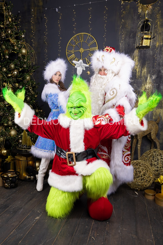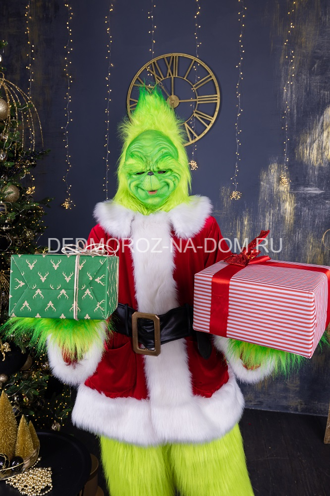 Костюм Гринча идеально подходит для Нового года, Рождества, хэллоуина, косплей вечеринки. Костюм состоит из полушубка, мохнатых штанов и таких же перчаток зеленого цвета, латексной маски, пояса и большущих красных ботинок в тон куртки. Если бы не его озорство с украденным Новым годом, вполне милый сказочный человечек оригинальной наружности.