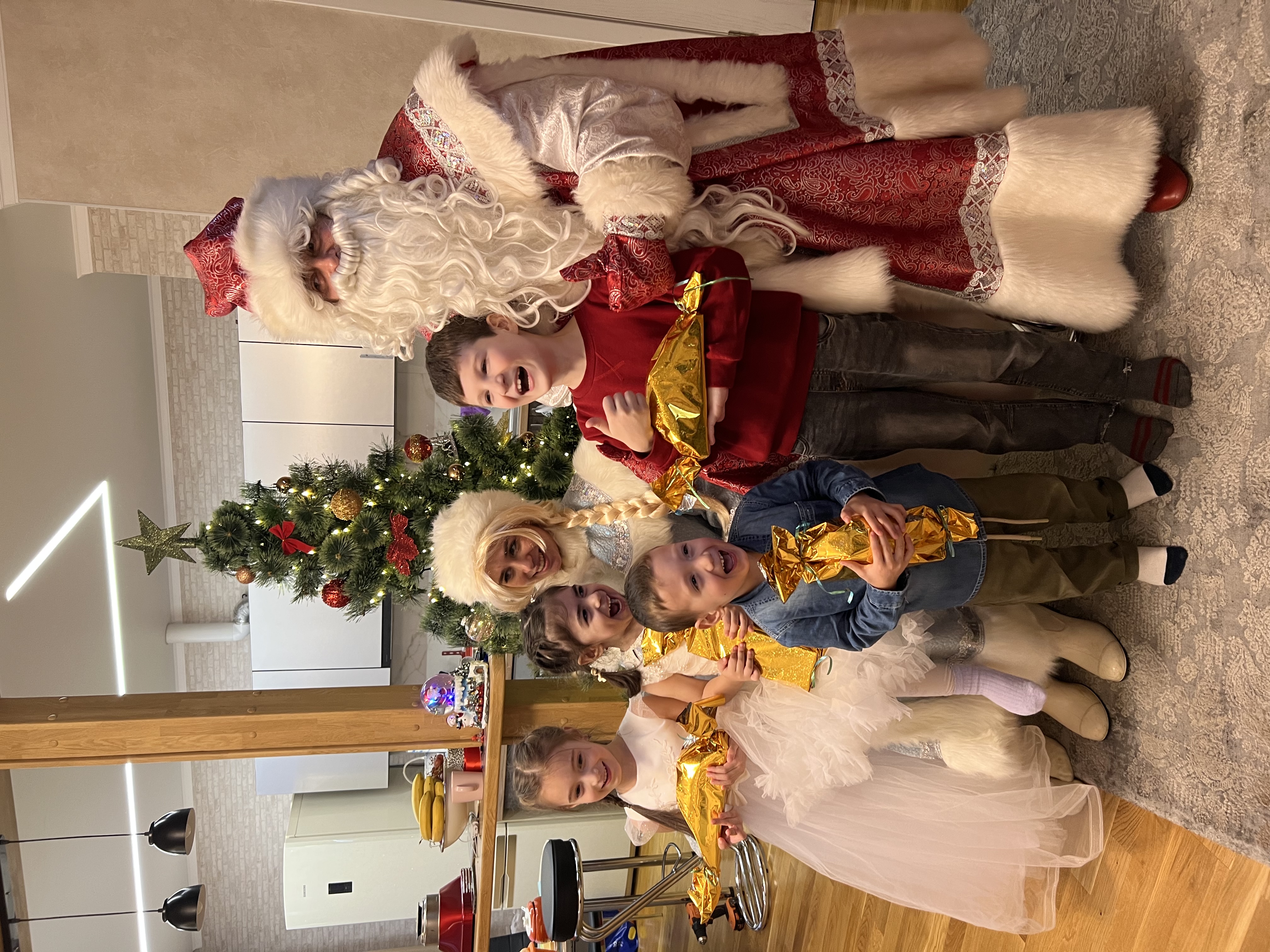 Впервые позвали Деда Мороза и снегурочку домой. И не пожалели!!! Актеры оказались очень веселыми и интересными! Заинтересовали и вовлекли в игры и хоровод всех детей от 2 до 10 лет, пели, слушали стихи и водили зоровод. Отдельно хотелось бы отметить костюмы и гримм: все на отличном уровне! Я боялась что придет ватная борода в помятом халате как в моем детстве…а тут расписные костюмы и, говорят ребята, что это еще не самые лучшие!)) и спасибо ребятам актерам, что пожождали наших гостей) не ворчали)